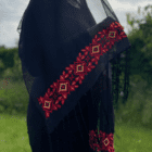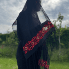 Lad dig forføre af elegance og historisk håndværk med vores chiffon tørklæde, håndbroderet af kvinder i Betlehem. Dette tørklæde er ikke blot et tilbehør, men en fortælling vævet af generationers arv.