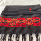 Vores tørklæde er en hyldest til denne tradition. De anvendte motiver er ikke kun dekorationer; de er symboler på unikke historier og den palæstinensiske kultur. Du kan bruge tørklædet til utrolig mange lejligheder og style det på utallige måder; rundt om halsen, som sjal over skuldrene, som et bælte om taljen, binde det i håret eller på tasken.