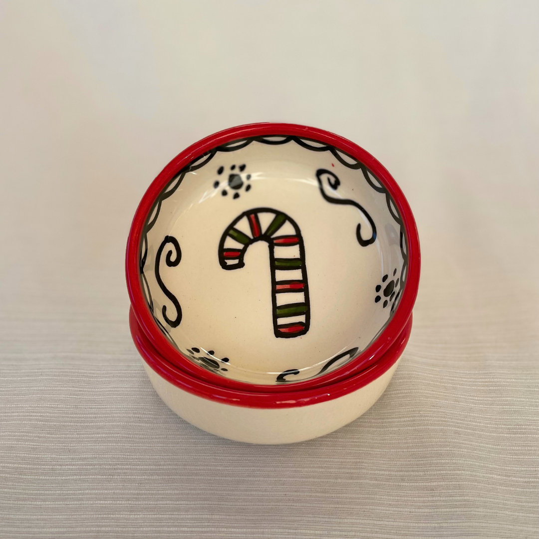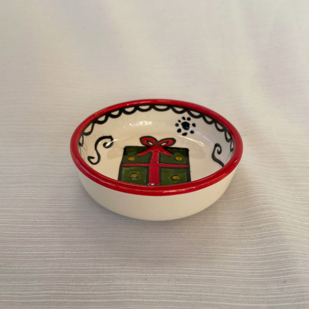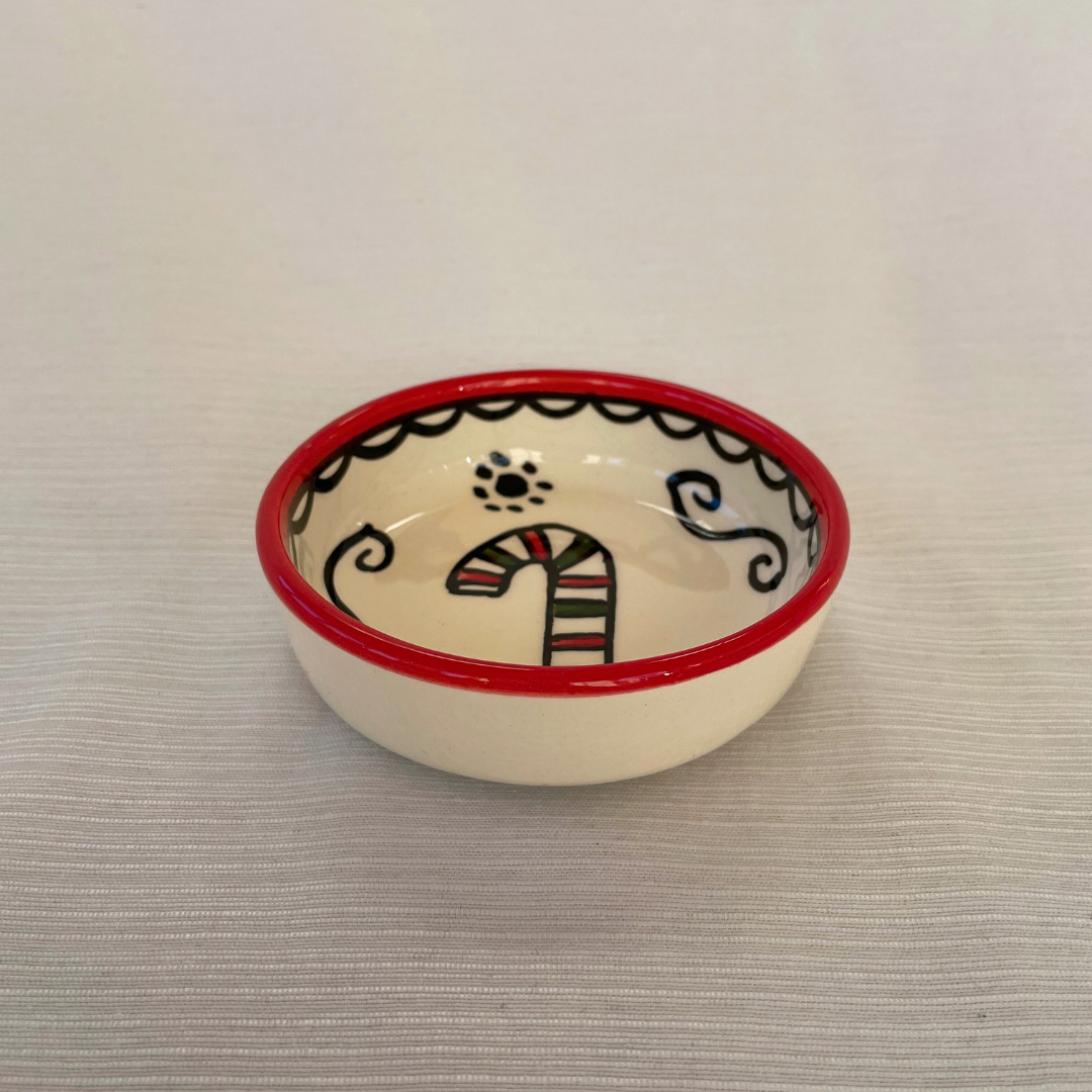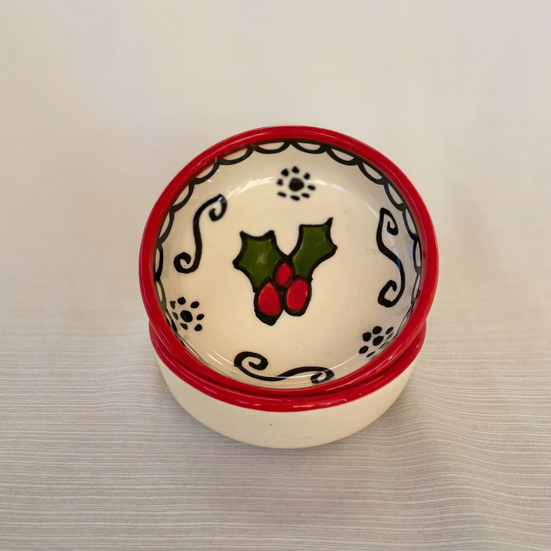 De små juleskåle er perfekte til julens hyggestunder. De er håndlavet og håndmalet i Al-Khalil / Hebron. Al-Khalil / Hebron er centrum for palæstinensisk keramikproduktion, en traditionelt håndværk med en historie på mere end 400 år, som blev blev initieret af osmannerne, der brugte keramik til at restaurere al-Aqsa-moskeen i Jerusalem.